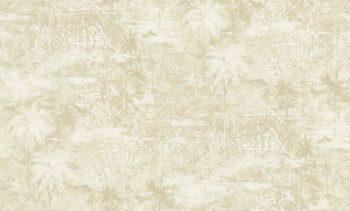 Non-woven wallpaper with a vinyl finish, palm tree motifs, beige tones, and a fabric-like texture.