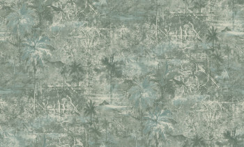 Non-woven wallpaper with a vinyl finish, palm tree motifs, green tones, and a fabric-like texture.
