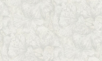 Non-woven wallpaper with a vinyl finish, leaf pattern, gray, cream.