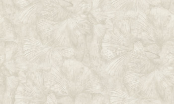 Non-woven wallpaper with a vinyl finish, leaf pattern, brown, cream.