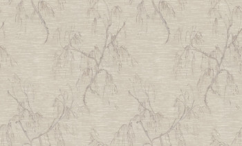 Non-woven wallpaper with a vinyl finish, featuring a flowering birch design in shades of beige and gray.