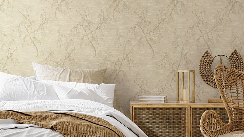 Non-woven wallpaper with a vinyl finish, fabric-like texture, light brown.