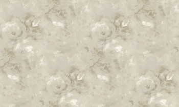Non-woven wallpaper with a vinyl finish, floral pattern with a painted effect, beige, gray.