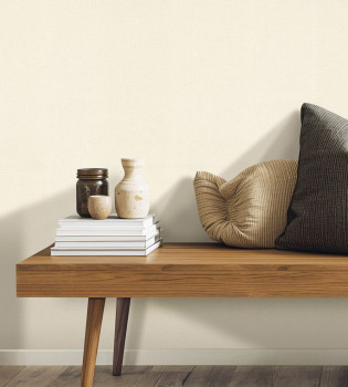 Non-woven wallpaper with a vinyl finish, tree bark pattern, light brown-beige.