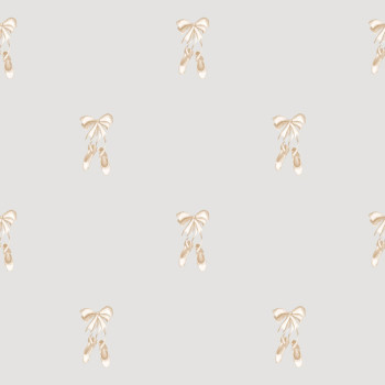 Delicate non-woven wallpaper for children's rooms, featuring gold ballerina shoes on a gray background.