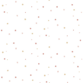 Smooth non-woven wallpaper, white background, stars in gold and shades of pink, 0.5 and 1 cm in size.