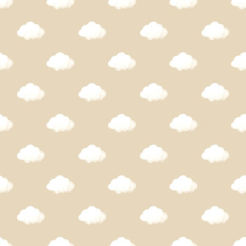 Smooth beige non-woven wallpaper featuring white clouds on a beige background.