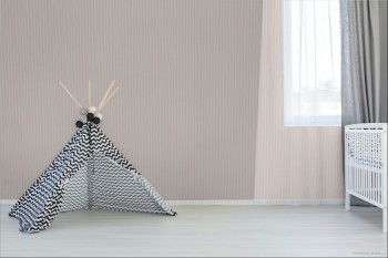 Non-woven wallpaper with a subtle texture, pink and white, 6 mm wide stripes.