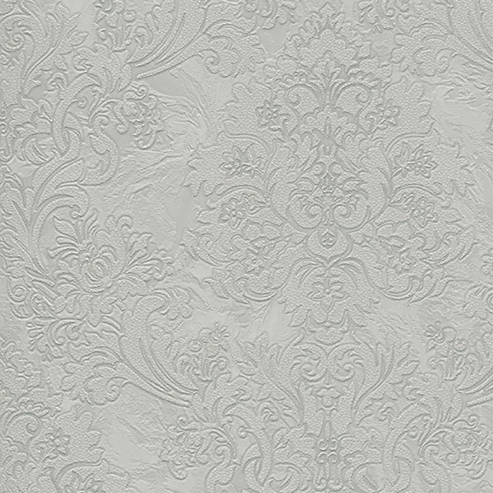 Luxury non-woven wallpaper with a vinyl surface in gray-beige shades with a baroque pattern.