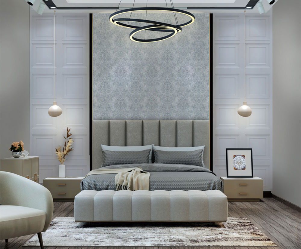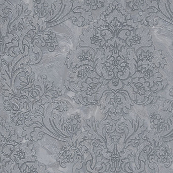 Luxury non-woven wallpaper with a vinyl surface in shades of gray with a baroque pattern.