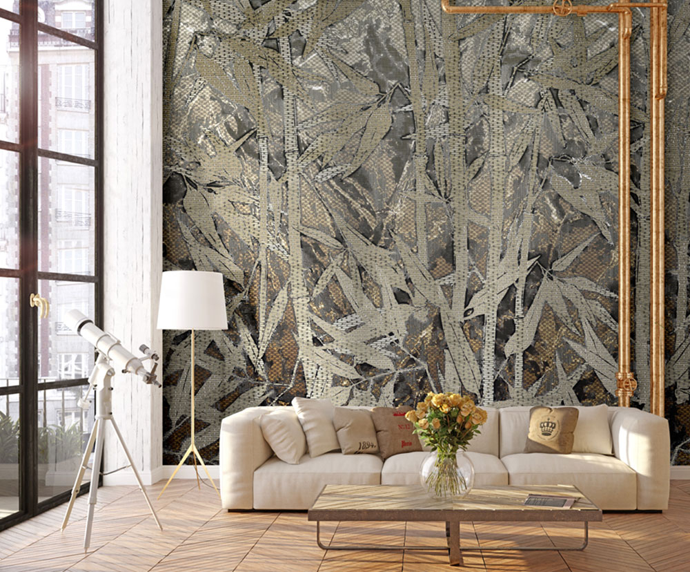 Unconventional Lamborghini wall mural with a bamboo motif. 5 parts