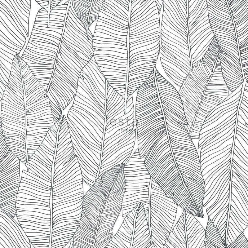 Black and white wallpaper with leaves 139011, Black & White, Esta