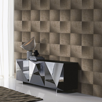 Brown-beige geometric design wallpaper, fabric texture 45251, Feeling, Emiliana