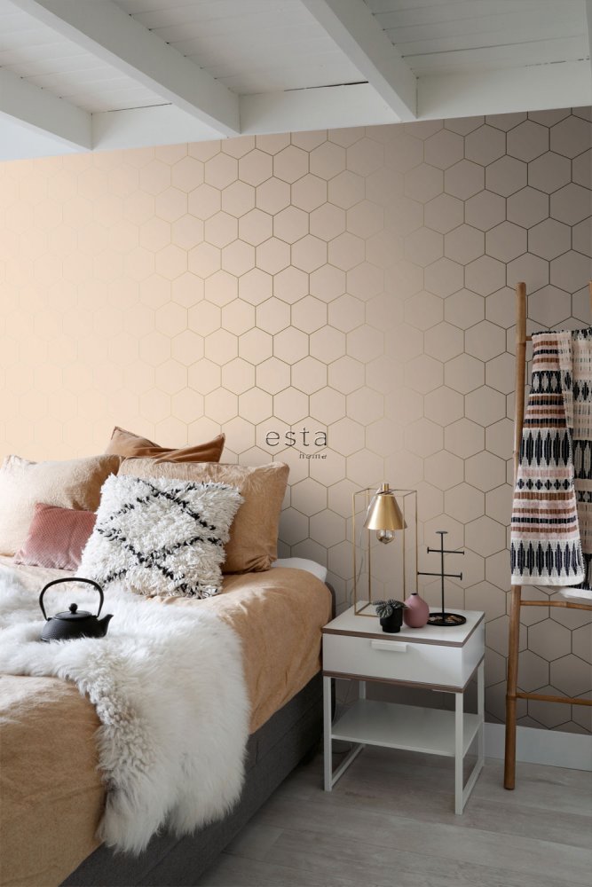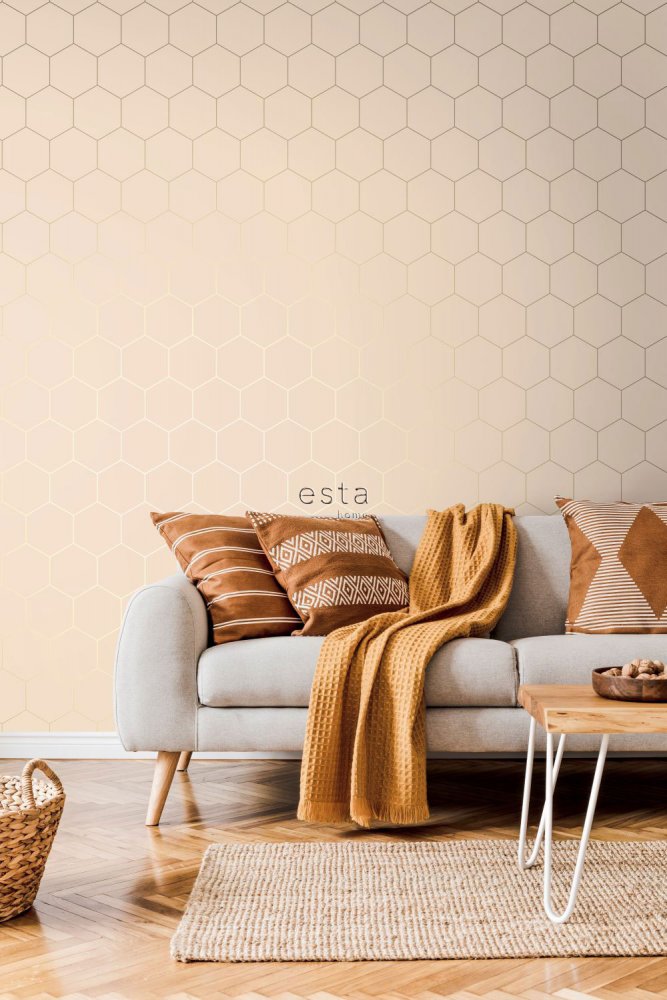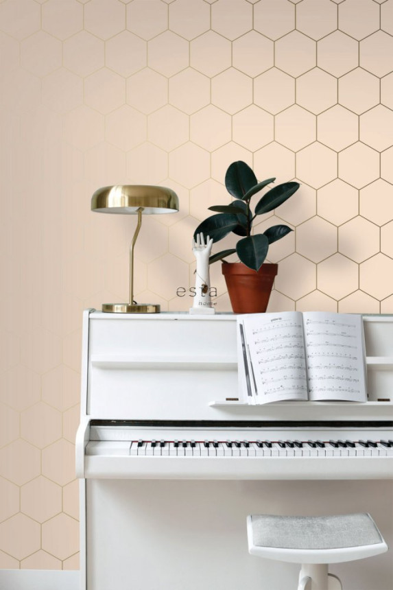 Beige non-woven wallpaper, geometric pattern of hexagons 139226, Art Deco, Esta