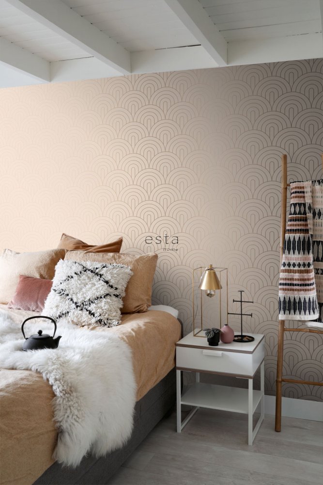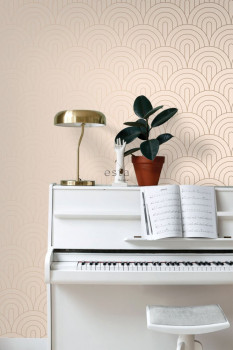 Beige non-woven wallpaper, geometric arched pattern 139216, Art Deco, Esta