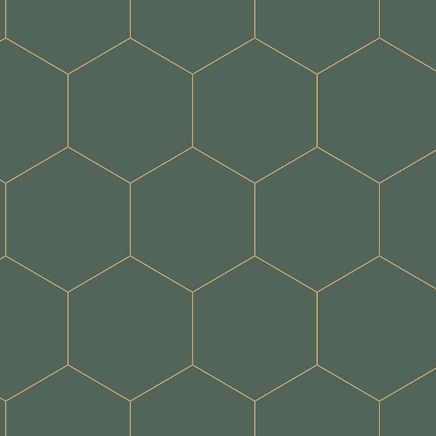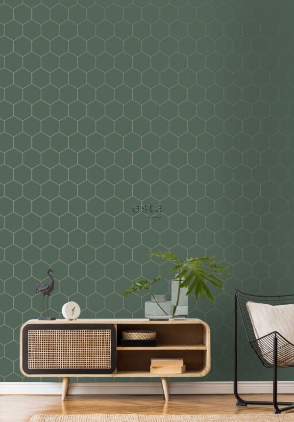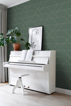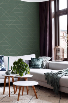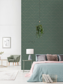 Green non-woven wallpaper with golden lines 139212, Art Deco, Esta
