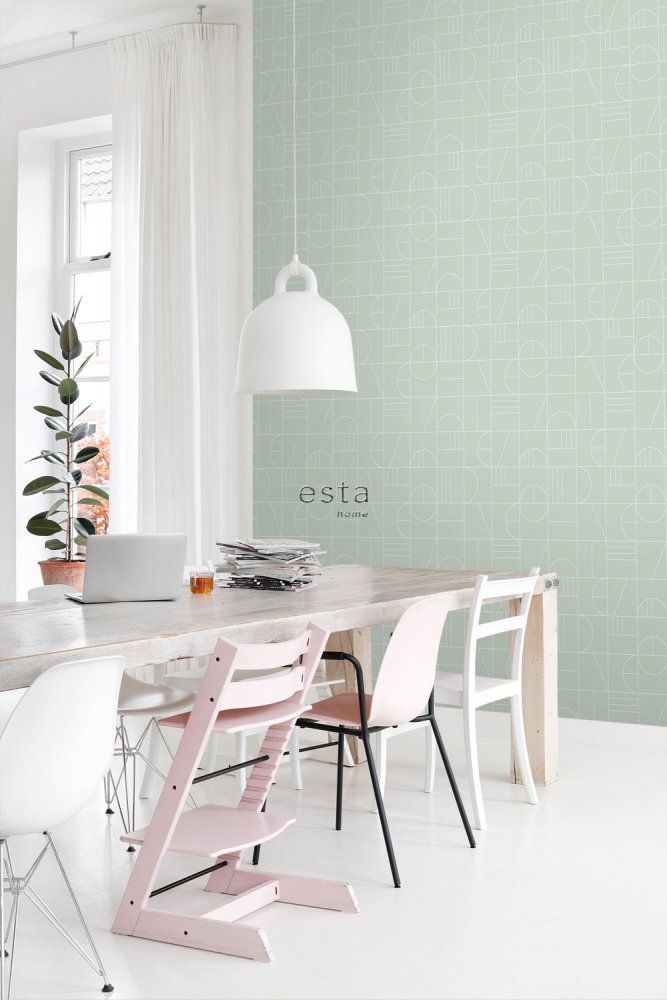 Green geometric pattern wallpaper 139209, Art Deco, Est