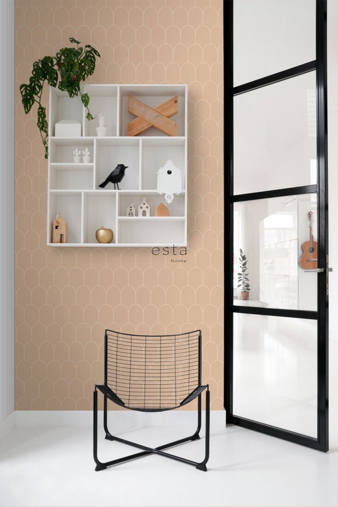 Beige non-woven wallpaper, geometric arched pattern 139203, Art Deco, Esta
