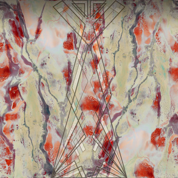 Luxury non-woven 3-piece decorative wallpaper mural with a distinctive stone pattern in a red-gray shade. The middle panel has a geometric pattern over the entire surface.