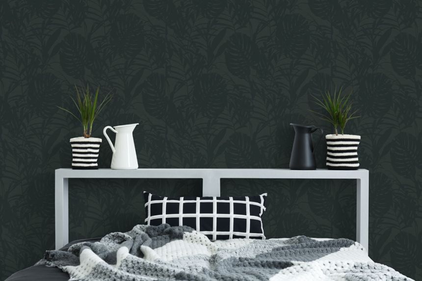 Non-woven wallpaper Leaves, Monstera 105975, Palm Green, Paradise, Graham & Brown