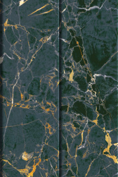 Luxury non-woven 2-piece decorative wallpaper mural with a marble pattern in black and gold colors. Can be combined with pattern Z64898