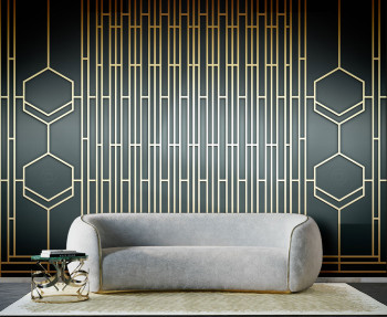 Luxury decorative panel - a distinctive golden geometric pattern on a green background. Can be combined with pattern Z64889