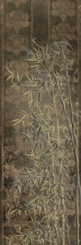 Luxurious non-woven decorative panel with a bamboo pattern on a background with a flaked wall motif with a flower pattern in brown-beige shades. This panel is combinable with panels Z6474 and Z6473.