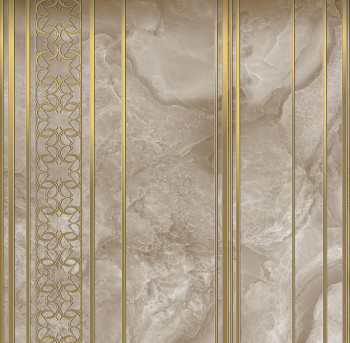 Luxury non-woven 3-piece decorative wallpaper mural with a distinctive golden geometric pattern on a beige background - marble imitation.