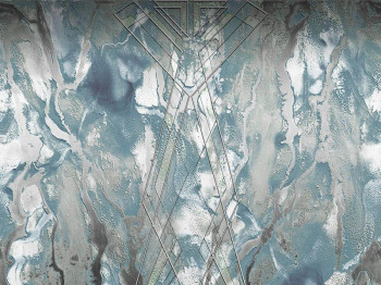 Luxury marbled wall mural in metallic shades with a geometric pattern.