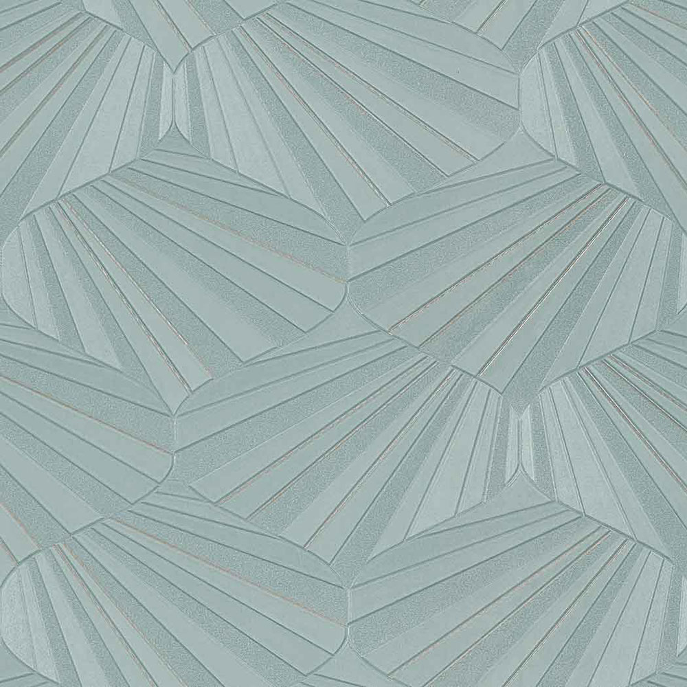 Luxury non-woven wallpaper with a vinyl surface. Delicate geometric pattern in blue-green shades with silver details.