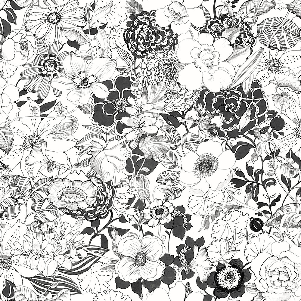Black and white wallpaper flowers 138503, Black & White, Esta