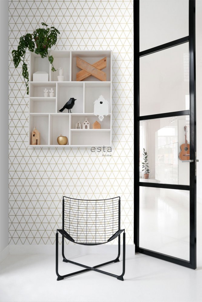 White-gold non-woven wallpaper with triangles 139147, Black & White, Esta