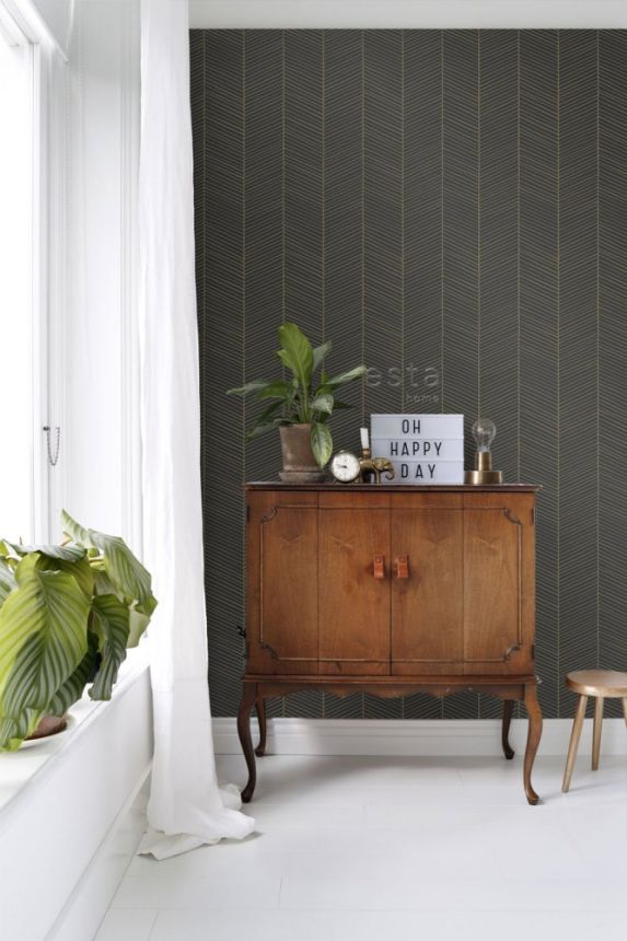 Black and gold stripes wallpapery 139136, Black & White, Art Deco, Esta