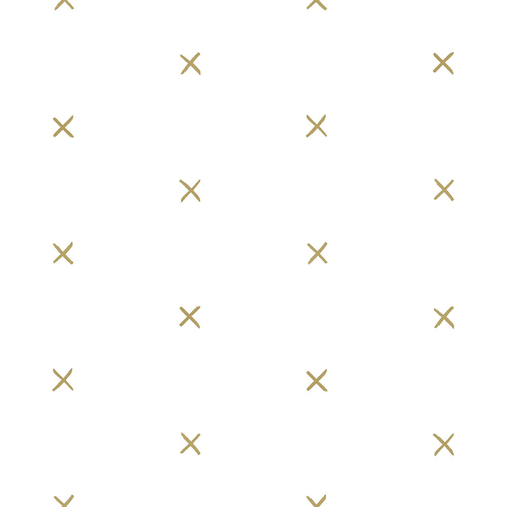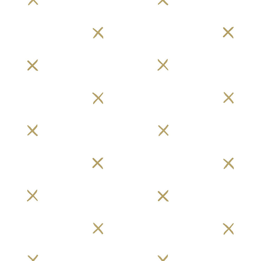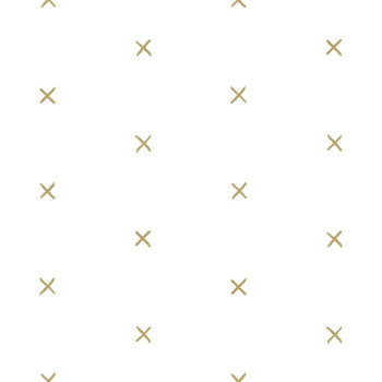 White non-woven wallpaper with golden crosses 139129, Black & White, Esta