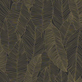 Black non-woven wallpaper with golden leaves contours 139126, Black & White, Esta
