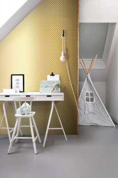 Golden non-woven wallpaper with white polka dots 139114, Black & White, Esta