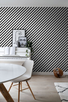 Black and white oblique stripes wallpaper 139112, Black & White, Esta