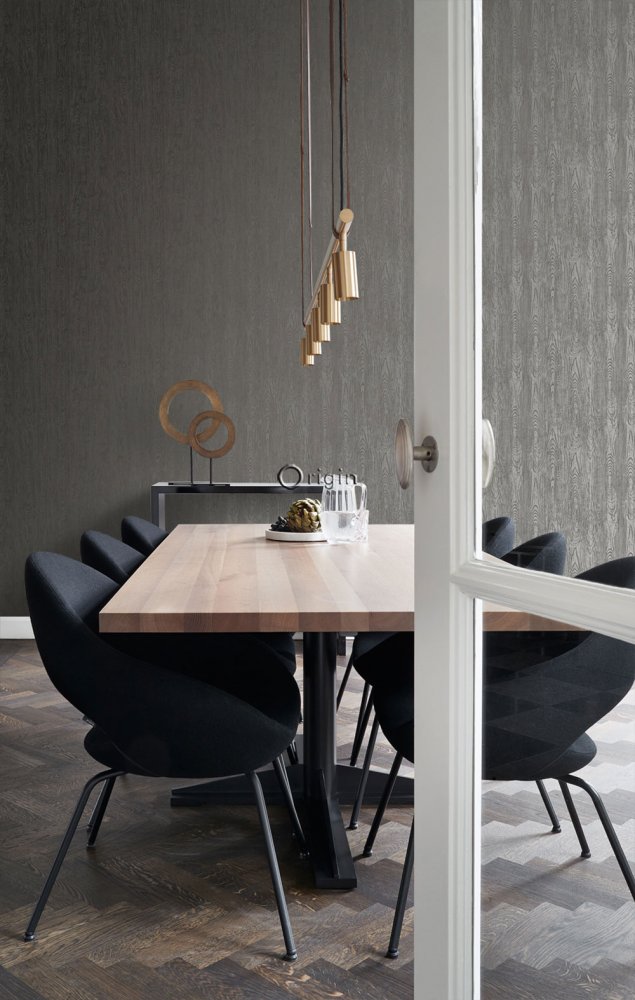 • Non-woven wallpaper collection MATIERES - WOOD - The WOOD collection of non-woven wallpapers is inspired by wood. You can choose from wood imitations in both traditional and unusual warm colours and faithfully depicted wooden patterns such as planks, annual rings, but also interesting stained glass and geometric patterns. This natural material will make your interior a cosy home.