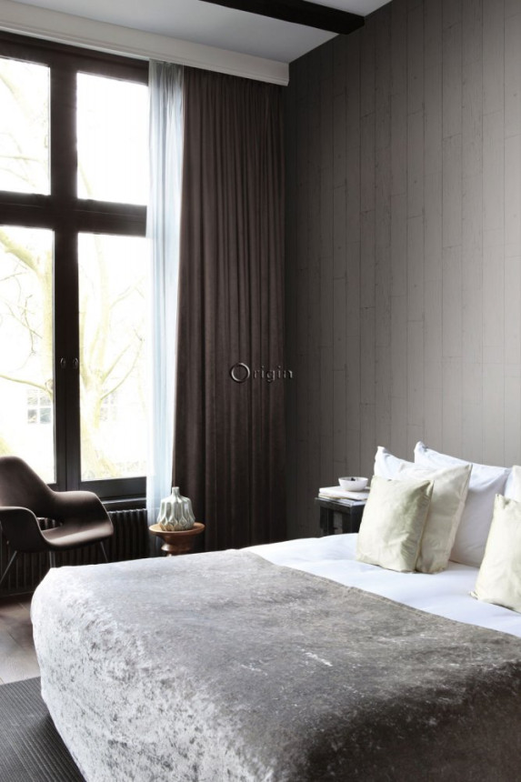 Metallic black and silver non-woven wallpaper, imitation wood, boards 347552, Matières - Wood, Origin