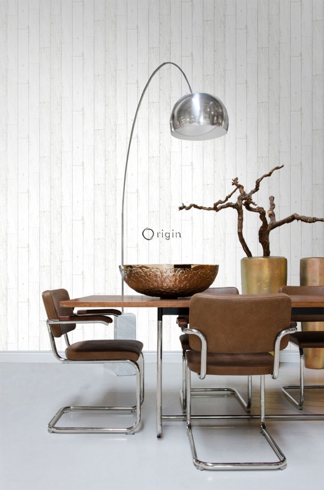 Metallic gray-silver non-woven wallpaper, imitation wood, boards 347551, Matières - Wood, Origin