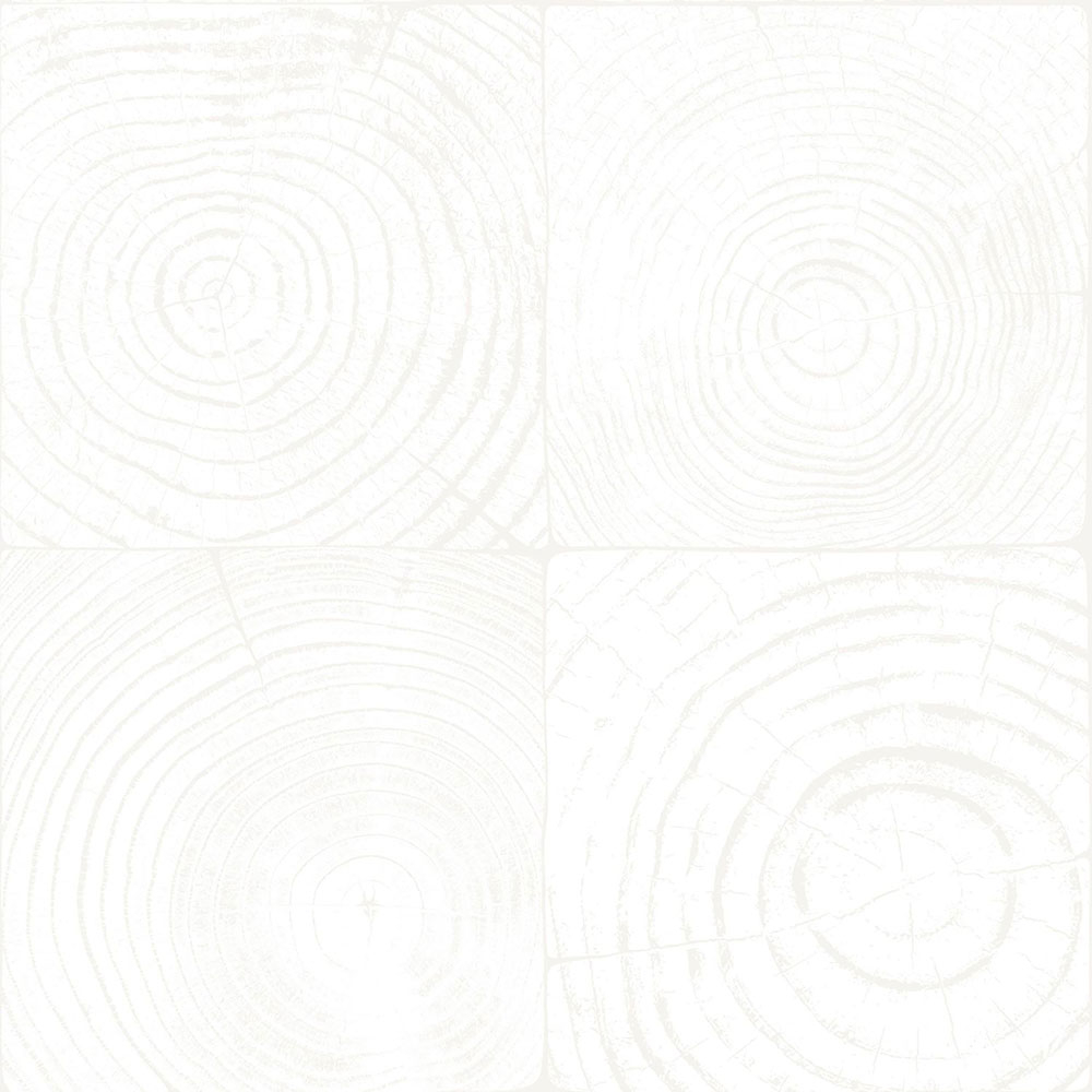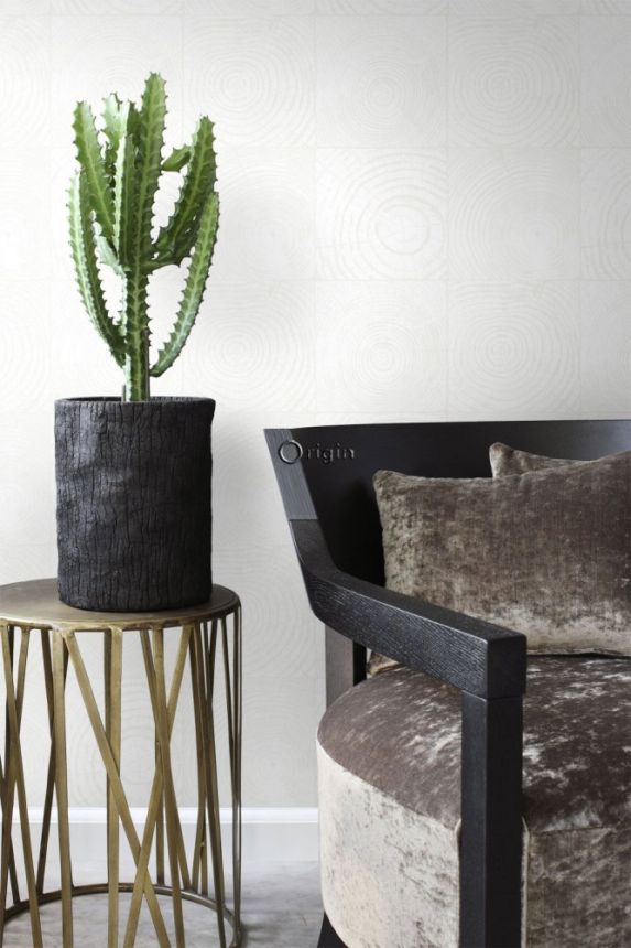 Non-woven wallpaper, imitation wood with annual rings, matt white and metallic pearl colors.