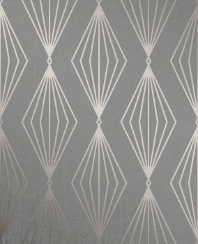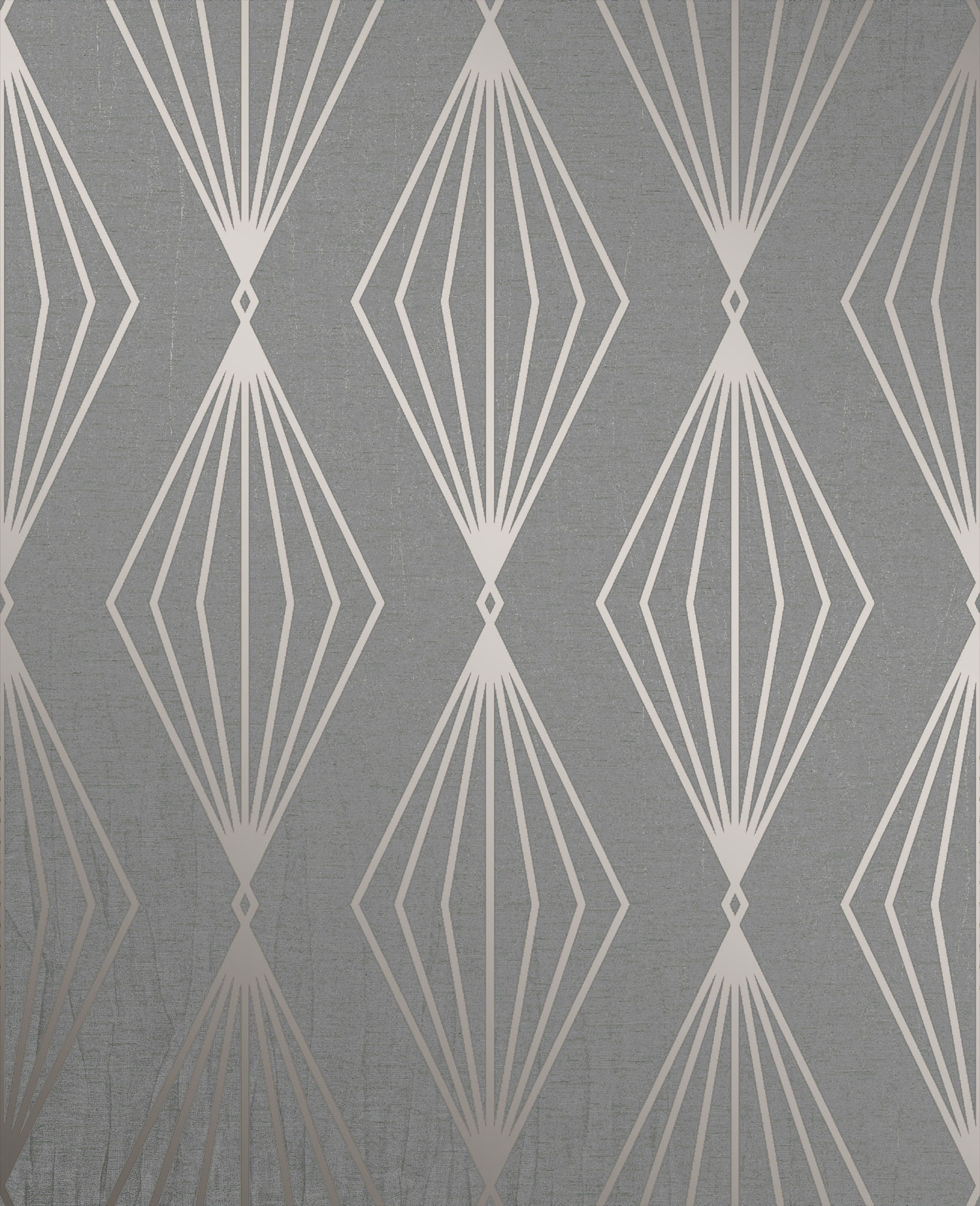 In reality is lighter, we recommend to reguest a sample. Non-woven wallpaper with a vinyl surface - a design inspired by a cut diamond on a creased silk. Metallic contours with silver sequins, a gray wallpaper background with subtle silver reflections. Easily combine with related wallpapers.