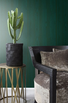 Non-woven wallpaper green metallic, imitation wood 347535, Matières - Wood, Origin