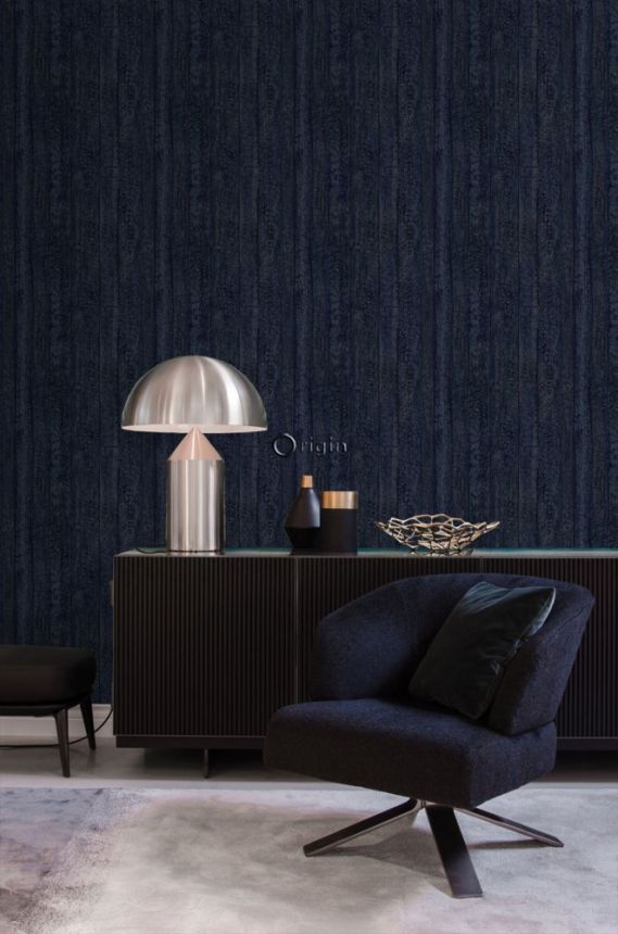 Dark blue non-woven wallpaper, imitation wood 347532, Matières - Wood, Origin