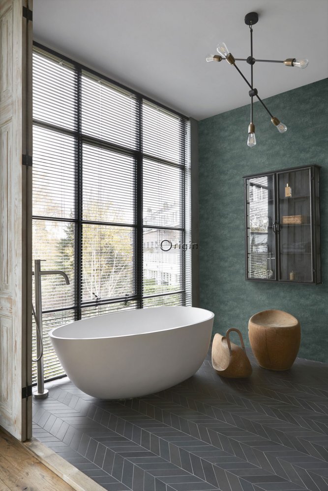 Green-blue non-woven wallpaper with an effect of cracks 347561, Matières - Stone, Origin