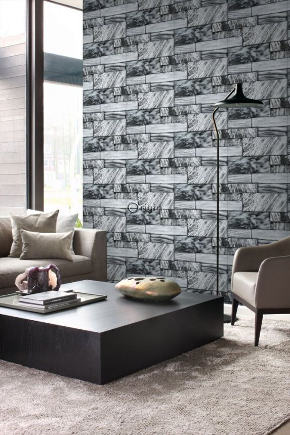 Non-woven wallpaper, decor gray stone cladding 337253, Matières - Stone, Origin