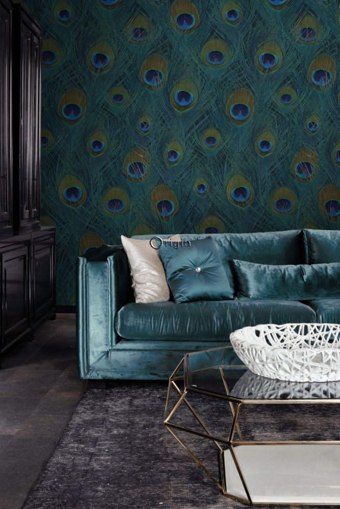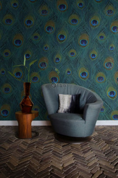 Non-woven wall mural, peacock feather pattern 357245, 1,5 x 2, 79 m, Luxury Skins, Origin