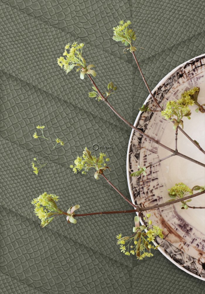 Green non-woven wallpaper, parquet leather pattern 347792, Luxury Skins, Origin