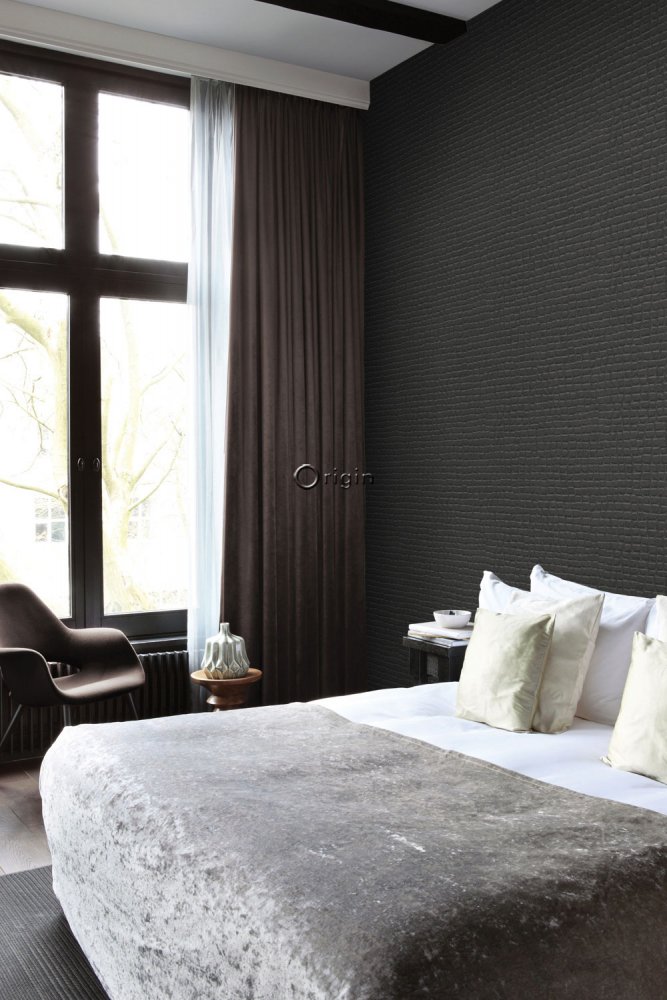 Non-woven black wallpaper, imitation crocodile skin 347783, Luxury Skins, Origin