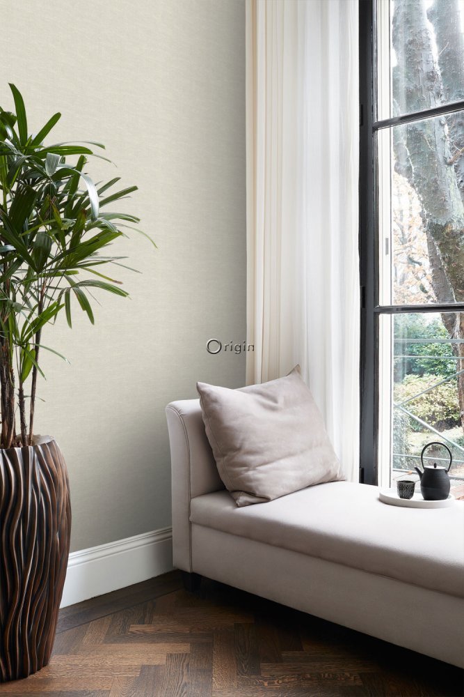 Non-woven gray-cream wallpaper, imitation fabric, fine texture.